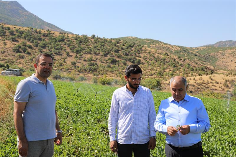 Bu kapsamda hibe almaya hak kazanan üreticilerimizden Miraç Karacimşit'in, Palu ilçesi Gümeçbağlar köyünde bulunan 34 dekarlık tarım arazisine yönelik gerçekleştirdiği yağmurlama sulama sistemi yatırımını İl Müdürümüz, Kırsal Kalkınma ve Örgütlenme Şube Müdürü ile İl Müdürlüğümüz teknik personeli yerinde incelendi.