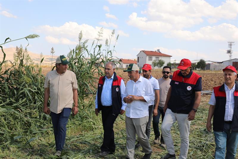 teknik personel ve üreticiler katıldı. Hasat yapılan alanda bitkiler ikinci