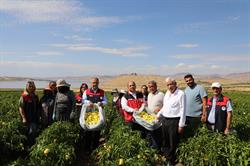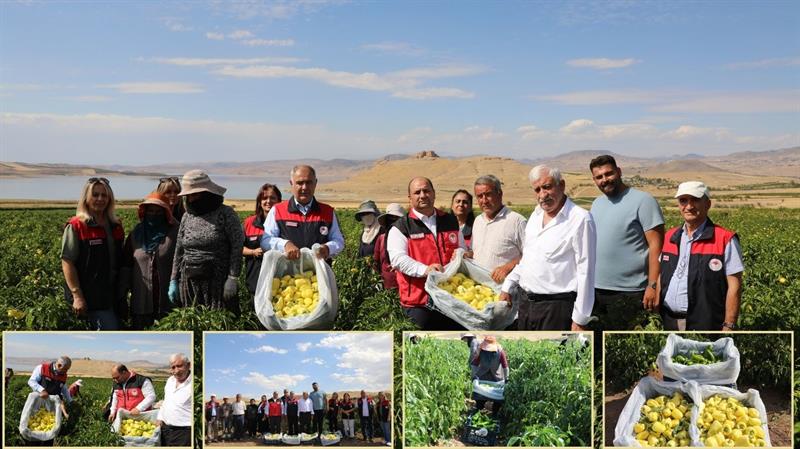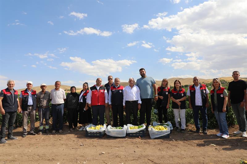 Aydıncık Köyü Alibeyköy Mezrası'nda üreticimiz Ramazan İzgi'ye ait biber tarlasında, Bakanlığımız Bitkisel Üretim Genel Müdür Yardımcısı Ergin Toprak, İl Müdürümüz, Bitkisel Üretim ve Bitki Sağlı Şube Müdürü ve teknik personel, tarım işçileriyle birlikte biber hasadına katılarak üreticilerimizin emeğine ortak oldular ve üretim sürecine eşlik ettiler.