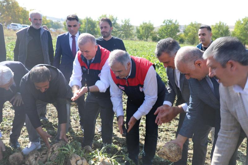 Elazığ Valimiz Sayın Numan Hatipoğlu ve İl Müdürümüz, Kovancılar İlçesi Demirci Köyü'nde düzenlenen Şeker Pancarı Hasadına katıldı.
