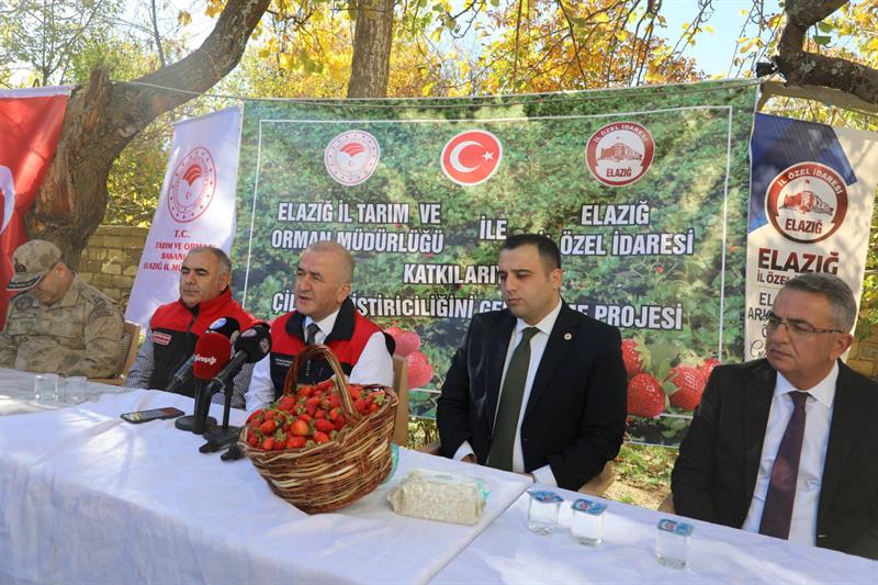 İlimizde çilek üretimi; Merkez ilçemizde 2.704 dekar alanda 7.437 ton, Maden ilçemizde 1.400 dekar alanda 2.800 ton, Sivrice ilçemizde ise 165 dekar alanda 201 ton civarındadır. Yerli çileğimiz kendine özgü aroması ve kalitesiyle tüketiciler tarafından ilgi görmesine rağmen, kısa raf ömrü nedeniyle pazar sorunları yaşanmaktadır. Bu nedenle İl Müdürlüğümüz, dayanıklı çilek çeşitleri üzerine demonstrasyon çalışmalarını sürdürmektedir.