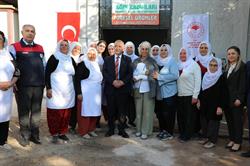 Sayın Valimiz, üretim atölyesinde incelemelerde bulunarak kadın üreticilerimizle bir araya geldi, üretim sürecine eşlik etti ve kooperatifin faaliyetleri hakkında bilgi aldı.