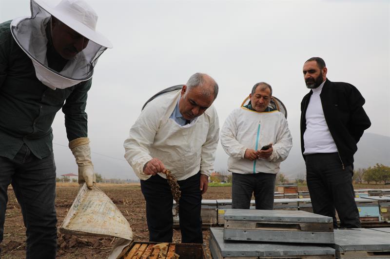 İl Müdürümüz, Elazığ Arı Yetiştiricileri Birliği Başkanı ve Arıcılık Birimi personelimizle birlikte Çağlar Köyü'nde arıcılarımızı ziyaret ederek kolonilerde yürütülen sonbahar ve kış hazırlıklarını yerinde inceledi.