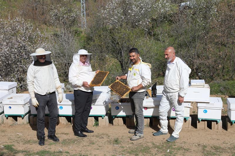 İl Müdürümüz, Elazığ Arı Yetiştiricileri Birliği Başkanı, teknik personelimiz ve arı yetiştiricileriyle birlikte, Merkeze bağlı Obuz Köyü'nde İbrahim Öz'e ait işletmede yürütülen ilkbahar bakım çalışmalarını yerinde inceleyerek değerlendirmelerde bulundu.