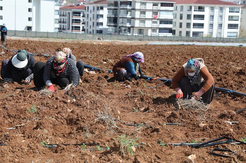 İlimiz Merkez Sürsürü Mahallesi'nde üretim alanlarında domates fidesi dikimine başlandı.