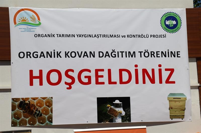 Gıda Tarım ve Hayvancılık İl Müdürlüğü tarafından yürütülen "Organik Tarımın Yaygınlaştırılması ve Kontrolü Projesi" kapsamında Maden İlçesi'nde yürütülen "Organik Arıcılığın ve Bal Üretiminin Geliştirilmesi" alt projesi dahilinde üreticilere organik kovan dağıtımı yapıldı.