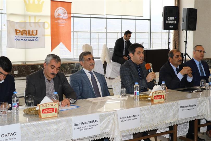 Palu İlçe Gıda Tarım ve Hayvancılık Müdürü Engin ÖZEN'in açılış konuşması ile başlayan toplantı, Palu Kaymakamı Mehmet ÖZTÜRK ve İl Gıda, Tarım ve Hayvancılık Müdür Yardımcısı İsmail GÜRBÜZ konuşmaları ile devam etti. İsmail GÜRBÜZ konuşmasında; "Palu ilçesi ülkemizin önemli su kaynağı üzerinde olan köklü bir ilçemiz. Murat havzası özellikle tarımsal üretimler konusunda iyi bir potansiyele sahip. Ancak biz bu potansiyeli yeterince değerlendiremiyoruz. Nüfus yoğunluğu bakımından Palu ilçesi Elazığ'da ikinci sırada ve genç nüfus da fazla. Palu'da hayvancılığa dayalı bitkisel üretimi yoğun bir şekilde yapabilir. Burada baraj göletinden faydalanarak bitkisel üretim, özellikle yem bitkisi üretimini yapabiliriz. Bakanlığımız son yıllarda hayvancılığa ciddi destekler veriyor. Bu destekler değerlendirildiğinde Palu ilçesinin kalkınmasına yardımcı olacaktır" dedi. İl Gıda Tarım ve Hayvancılık Müdür Yardımcısı İsmail GÜRBÜZ konuşmasının sonunda katılımcılara teşekkür ederek toplantının hayırlara vesile olmasını diledi.