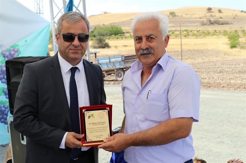il Gıda Tarım ve Hayvancılık Müdürü Sayın Turan KARAHAN yaptığı konuşmada ; Elazığ'ın Üzüm potansiyeli , marka haline gelen üzüm çeşitleri ve coğrafi işaret belgesi alan öküzgözü üzümü hakkında bilgiler vererek, konuklara katılım ve katkılarından dolayı teşekkürlerini dile getirdi. Protokol konuşmalarının ardından Elazığ yöresel halk oyunları gösterisi yapıldı. Siyah ve Beyaz Üzüm kategorilerinde yarışmaya katılan 26 üreticiden jüri değerlendirme sonuçlarına göre dereceye giren üreticilerimize protokol tarafından hediyeleri verildi. 1. olan üreticilerimize çapa makinasi, 2.olan üreticilerimize pulvarizatör (ilaçlama makinası), 3. Olan üreticilerimize ise Budama seti verildi. Ayrıca yoğun üzüm üretimi yapılan 5 köyün üreticileri adına köy muhtarlarına üzüm sıkma makinası hediye edildi.