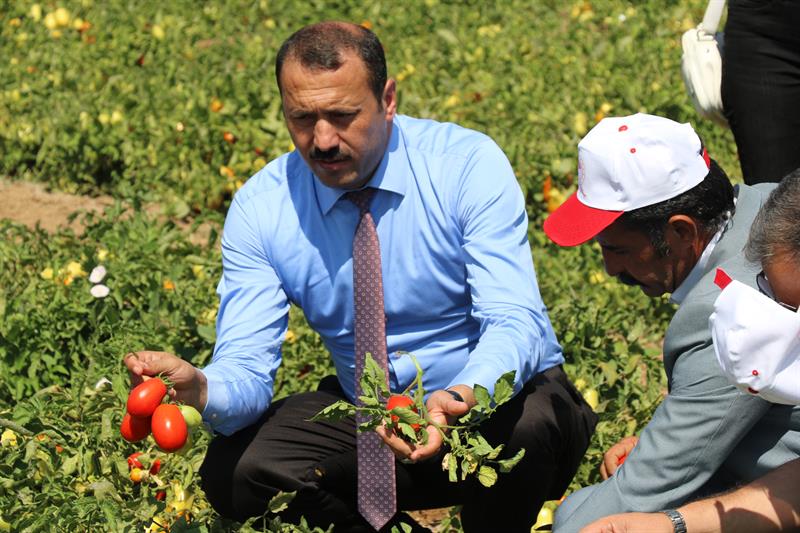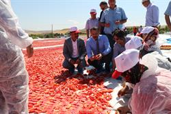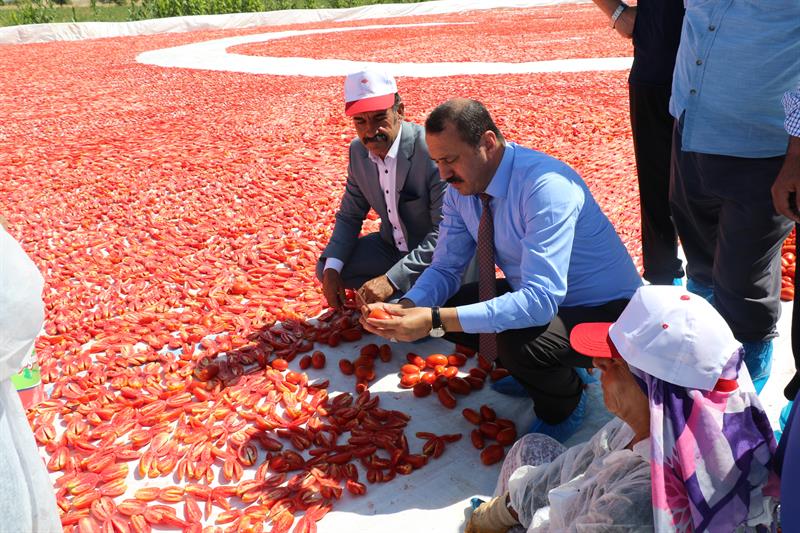 Yaklaşık 20 bin dekar alanda sadece domates ekiminin yapıldığını da aktaran KARAHAN, 70 bin ton civarında üretimin gerçekleştiği bir sektör olduğunu kaydetti. Kaliteli ve birinci sınıf yaklaşık 10 kiloluk domatesten bir kiloluk kurutmalık domates elde edildiğine dikkat çeken KARAHAN, "Ancak besin değeri ve organiği yüksek olan ve herkesin rahatlıkla tüketebileceği bir ürün. Bizler de bu ürünün, sanayisini daha da geliştirip ilimizden sadece Türkiye piyasasına değil dünya piyasasına konu olacak ve sofralarında domatesi bulundurmaya gayret göstereceğiz. Bizim sürekli vurguladığımız, sözleşmeli üretim modelini hayata geçiren ve üreticilerin ürettiği ürünü burada kurutmalığa dönüştürmek üzere yapılan bir protokol ile hem üretici kazanıyor hem de sanayicimiz kazanıyor. Dolayısıyla biz sadece üretmeyeceğiz, yeni modellerimizi de üreticilerimiz ile buluşturacağız. Bu sözleşmeli üretim modelini daha da yaygınlaştıracağız. Bu manada bütün ilçelerimizde çalışmalarımız devam ediyor" ifadelerini kullandı.